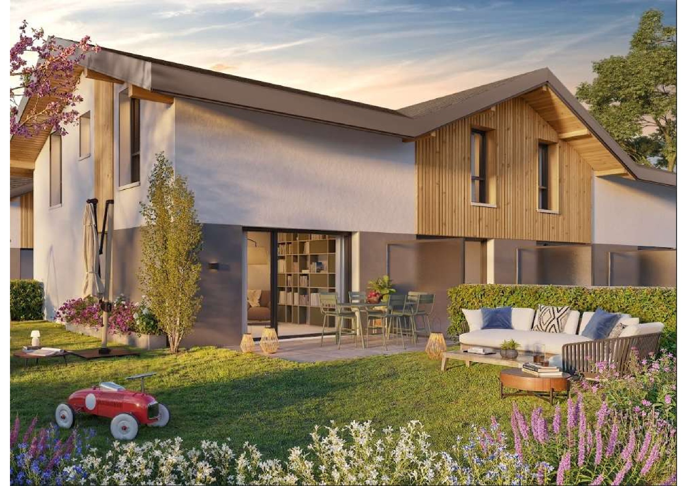 Située entre Annecy et Genève, dans un cadre de vie préservé et verdoyant, la nouvelle résidence Closia à Groisy propose 11 maisons du T3 au T4 à l’architecture contemporaine, pensées pour votre confort et votre tranquillité. Chaque maison dispose d’une terrasse et d’un jardin privatif pour profiter pleinement des beaux jours, ainsi que d’un agréable dégagement offrant des vues sur les paysages environnants. À proximité immédiate, vous bénéficiez de toutes les commodités essentielles : écoles, commerces, transports. A41. Avec la Gare de Groisy à 3 minutes à pied et le LEMAN EXPRESS, accédez rapidement à Genève et à Annecy ! Un équilibre parfait entre nature, praticité et qualité de vie. -Financez une partie de votre acquisition sans intérêt grâce au PTZ* -Profitez de garanties de rachat et de relogement proposées par ALL ACCESS * Sous conditions de ressources et d’éligibilité – Voir conditions auprès de nos conseillers.